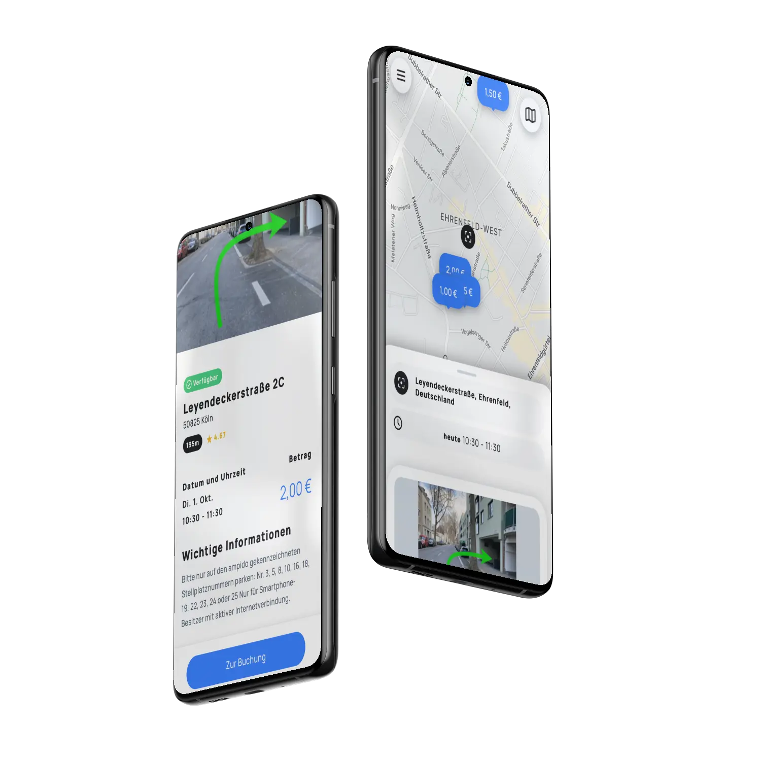 ampido navigiert dich direkt zu deinem Parkplatz. Aussteigen und den Tag genießen.